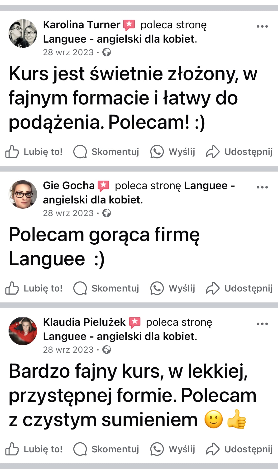 ✅ wsparcie grupy na FB